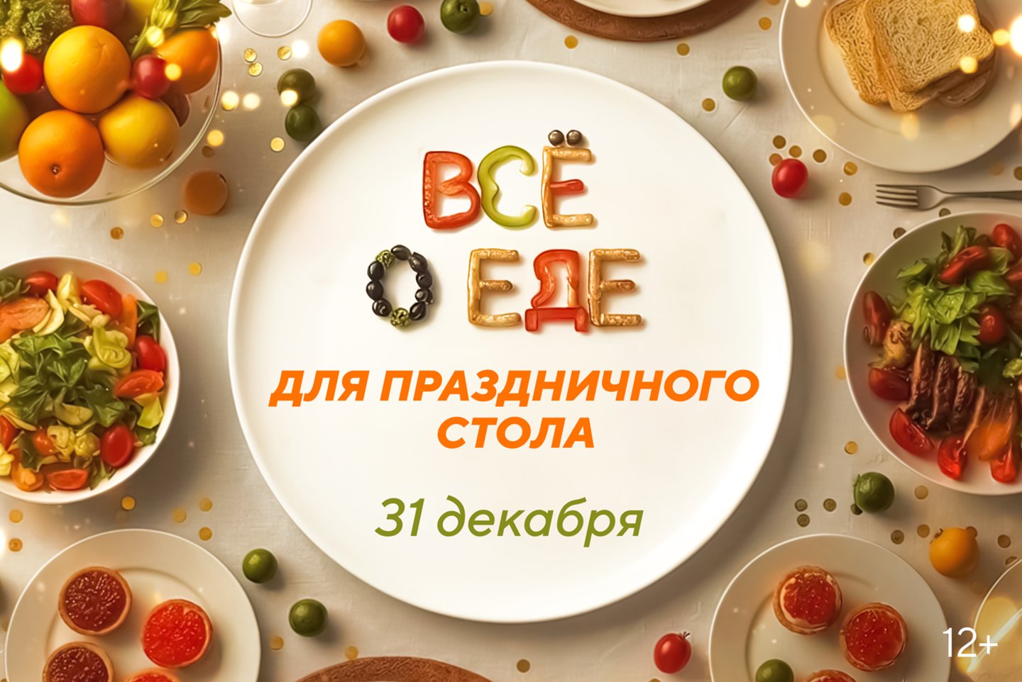 31 декабря целый день — марафон «Всё о еде для праздничного стола». В программах «Еда. Правильное питание» и «О самом главном» ведущие и эксперты разберут пользу и вред ингредиентов для праздничных блюд: мяса, масла, яиц, томатов, сахара. А в проекте «Наука есть» кулинария станет настоящей лабораторией: пока повар готовит, химик будет раскладывать каждый этап на молекулы, объясняя, какое «волшебство» происходит с пищей в процессе готовки.